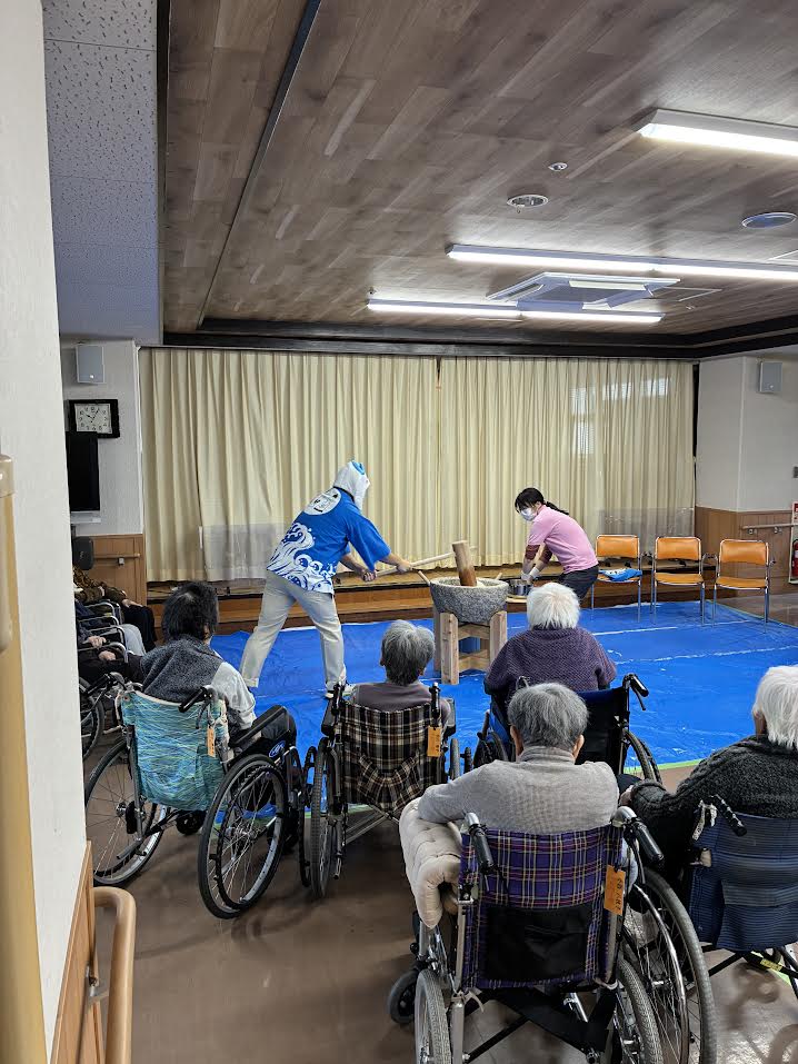 『すごい迫力!つきたてのお餅を食べたいなー!』