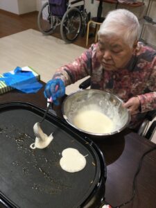 こんにちは!グアムユニットです。本日は車でしらさぎ公園に行きお花見をしました🌸まだ満開とはいきませんでしたが、春を感じられ皆様喜ばれていました。 そしておやつにワッフルを召し上がられました🥞ワッフルの上にホイップクリームをのせ、その上にチョコレートソースとチョコスプレーをトッピング✨見た目がかわいいので見た瞬間に驚き、笑顔になられる入居者様もおられました。